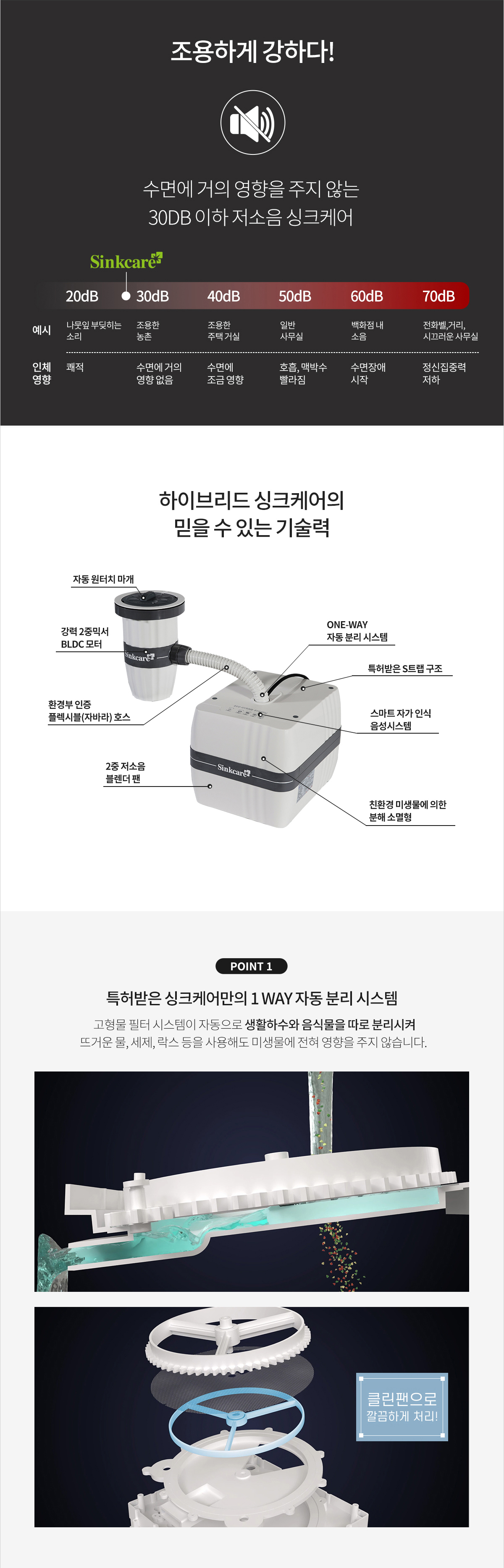 지금까지 경험하지 못한 극상의 편리함. 안전성ㆍ친환경ㆍ편의성을 모두 갖춘 싱크케어. 천연 미생물로 분해하여